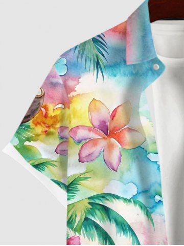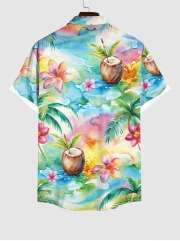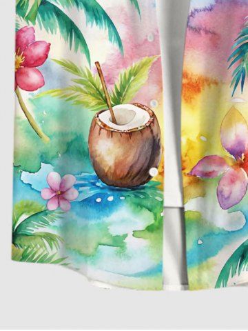 Plus Size Colorful Watercolor Ombre Coconut Tree Flower Juice Print Hawaii Button Pocket Shirt For Men - Multi-a - 6xl