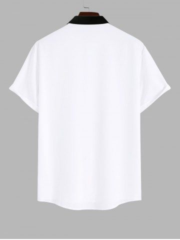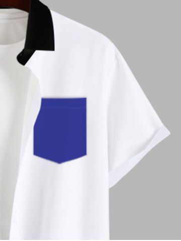 Plus Size Contrast Colorblock Print Hawaii Button Pocket Shirt For Men - White - 4xl