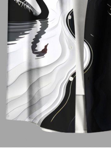 Plus Size Contrast Colorblock Two Tone Swan Print Hawaii Button Pocket Shirt For Men - Black - 5xl