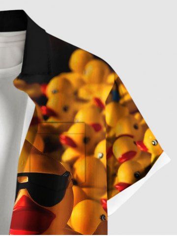 Plus Size Cool Duck Print Hawaii Button Pocket Shirt For Men - Black - M