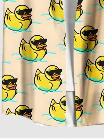 Plus Size Cool Duck River Print Hawaii Button Pocket Shirt For Men - Beige - 6xl