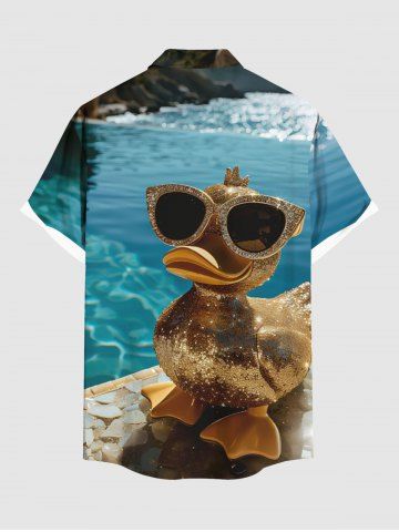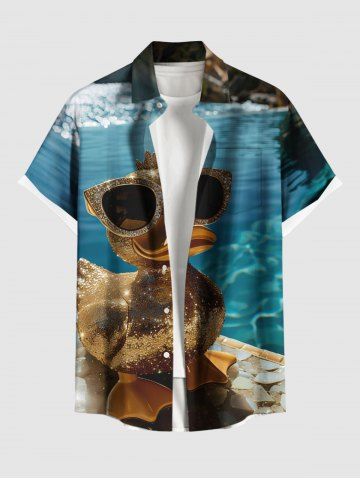 Short Sleeves Shirts > Plus Size Cool Duck Sea River Print Hawaii Button Pocket Shirt For Men