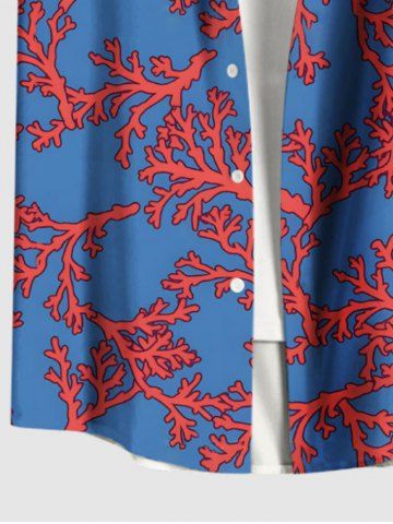 Plus Size Coral Branch Two Tone Print Hawaii Button Pocket Shirt For Men - Blue - L
