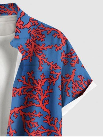 Plus Size Coral Branch Two Tone Print Hawaii Button Pocket Shirt For Men - Blue - 2xl