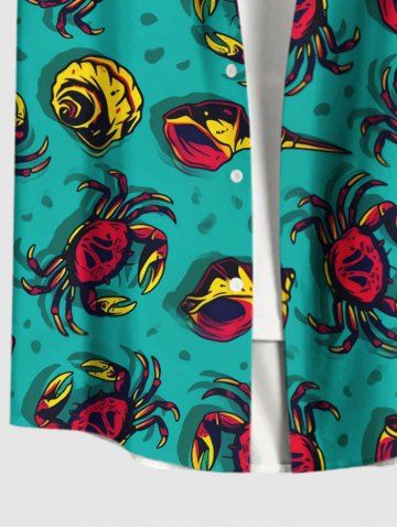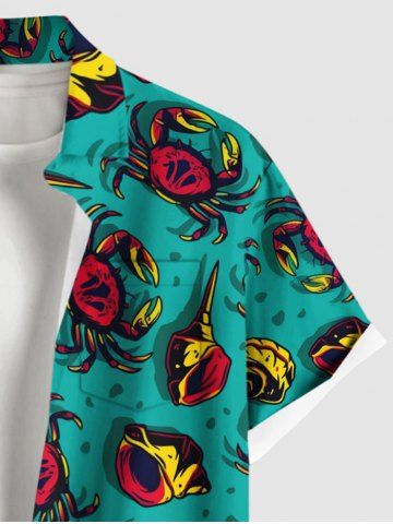 Plus Size Crab Conch Shell Print Hawaii Sea Creatures Button Pocket Shirt For Men - Green - 2xl