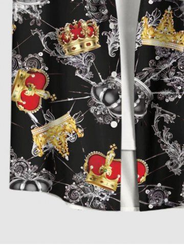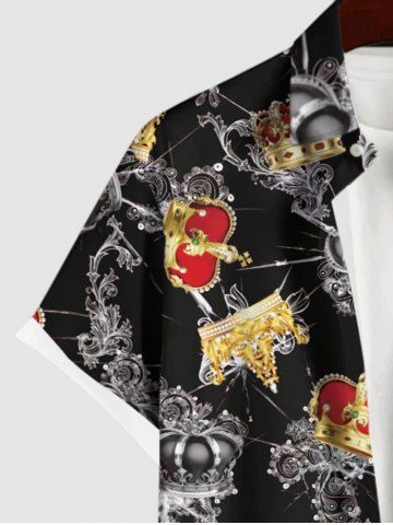 Plus Size Cracked Ice Crown Print Button Pocket Shirt For Men - Black - Xl