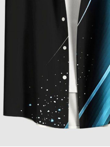 Plus Size Cross Musical Notes Galaxy Light Beam Print Buttons Pocket Hawaii Shirt For Men - Black - 5xl