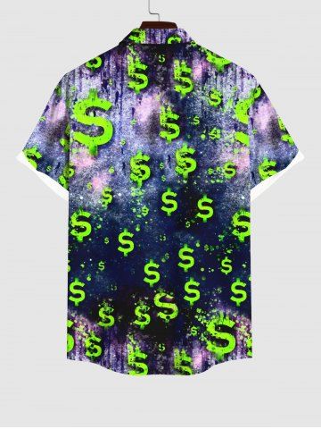Short Sleeves Shirts > Plus Size Currency Symbol Ombre Tie Dye Galaxy Print Button Pocket Shirt For Men