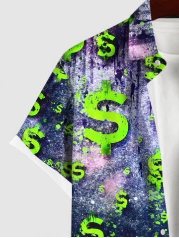Plus Size Currency Symbol Ombre Tie Dye Galaxy Print Button Pocket Shirt For Men - Black - S