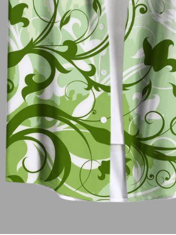 Plus Size Curve Branch Leaves Print Hawaii Ombre Button Pocket Shirt For Men - Green - 4xl