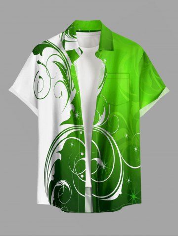 Plus Size Curve Branch Print St. Patrick's Day Hawaii Button Pocket Shirt For Men - Green - L