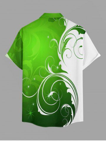 Plus Size Curve Branch Print St. Patrick's Day Hawaii Button Pocket Shirt For Men - Green - 4xl