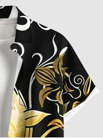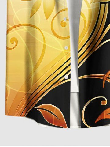 Plus Size Curve Floral Leaves Print Hawaii Ombre Button Pocket Shirt For Men - Yellow - M