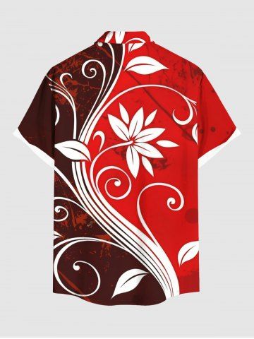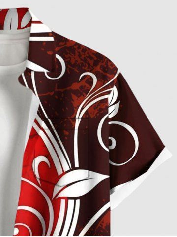 Plus Size Curve Flower Print Hawaii Button Pocket Shirt For Men - Red - L