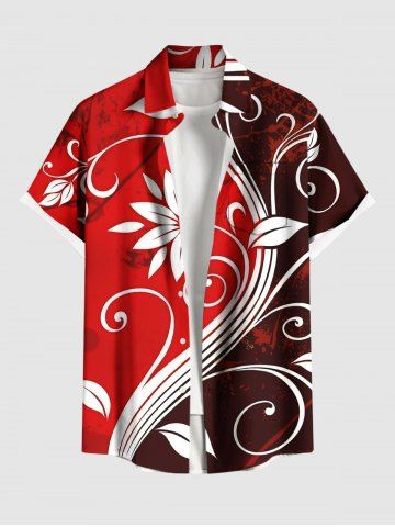 Plus Size Curve Flower Print Hawaii Button Pocket Shirt For Men - Red - 3xl