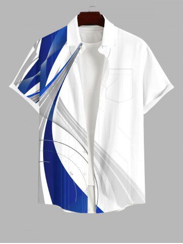 Plus Size Curve Geometric Patterns Print Buttons Pocket Hawaii Shirt For Men - White - 4xl