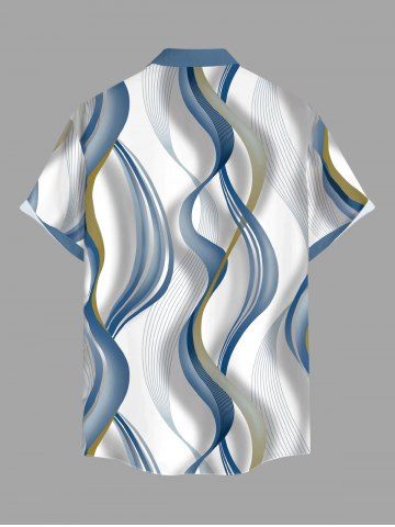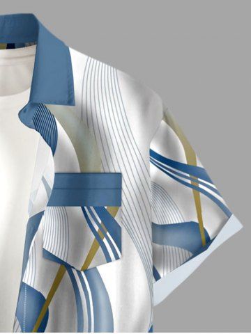 Plus Size Curve Ligh Beam Print Buttons Pocket Hawaii Shirt For Men - Blue Gray - 5xl