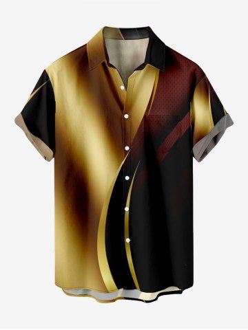 Short Sleeves Shirts > Plus Size Curve Light Beam Colorblock Print Buttons Pocket Shirt For Men