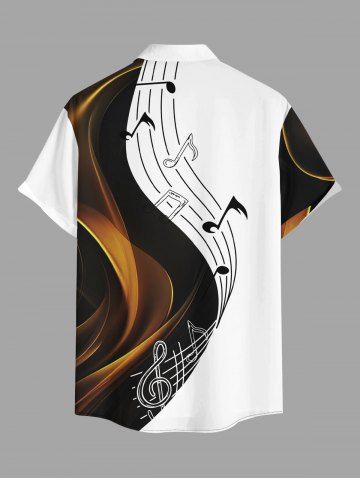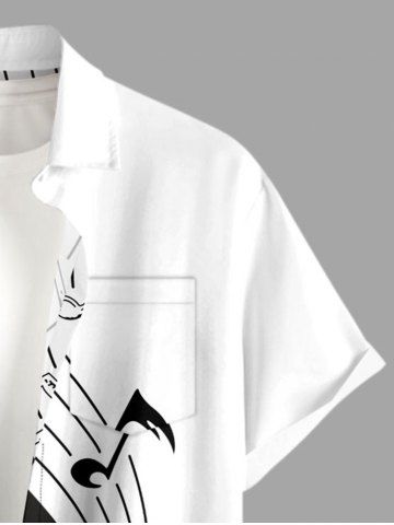 Plus Size Curve Music Symbol Print Hawaii Button Pocket Shirt For Men - White - 6xl