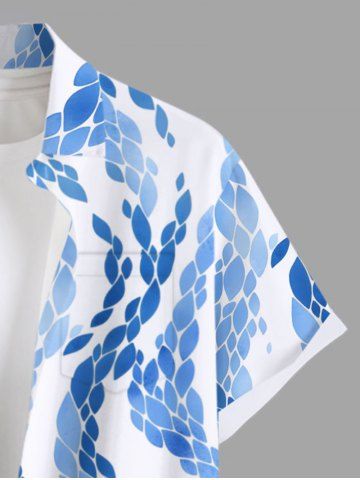 Plus Size Curve Ombre Sea Wave Print Hawaii Button Pocket Shirt For Men - Blue - M