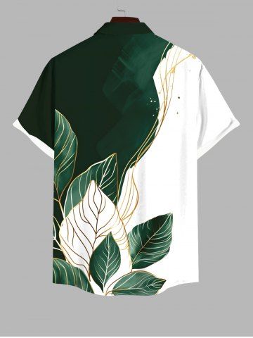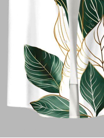 Plus Size Curve Tropical Leaves Contrast Colorblock Print Hawaii Button Pocket Shirt For Men - White - 2xl