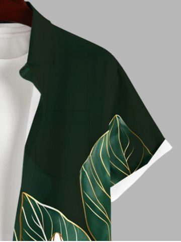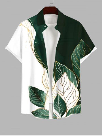 Short Sleeves Shirts > Plus Size Curve Tropical Leaves Contrast Colorblock Print Hawaii Button Pocket Shirt For Men