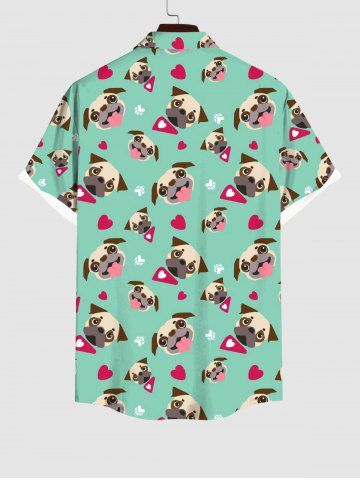 Plus Size Cute Dog Heart Paw Print Button Pocket Shirt For Men - Green - 3xl