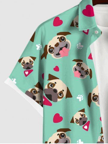 Short Sleeves Shirts > Plus Size Cute Dog Heart Paw Print Button Pocket Shirt For Men