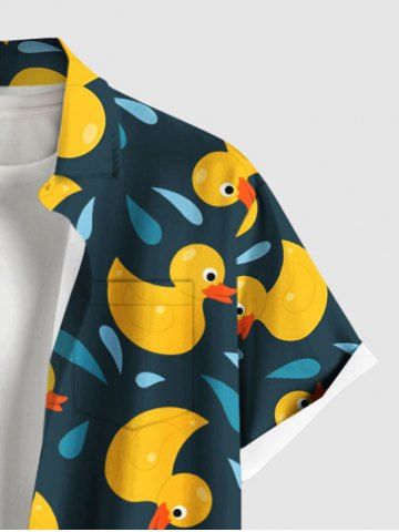 Short Sleeves Shirts > Plus Size Cute Duck Drop Print Hawaii Button Pocket Shirt For Men