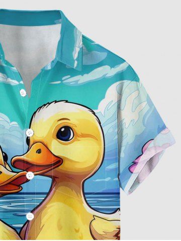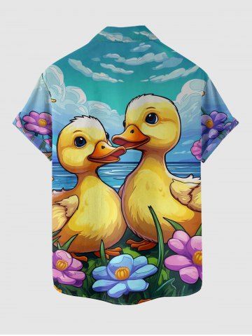Short Sleeves Shirts > Plus Size Cute Duck Flower Sky Print Hawaii Button Pocket Shirt For Men