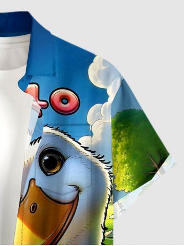 Plus Size Cute Duck Pond Sun Print Hawaii Buttons Pocket Shirt For Men - Blue - L