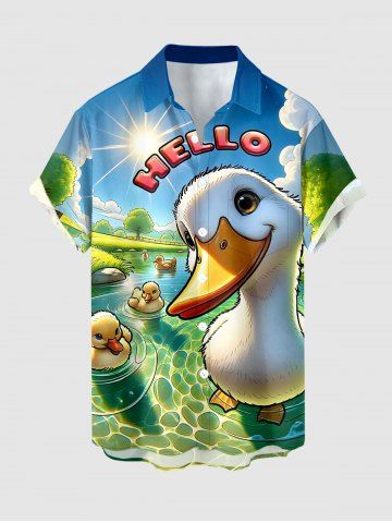 Short Sleeves Shirts > Plus Size Cute Duck Pond Sun Print Hawaii Buttons Pocket Shirt For Men