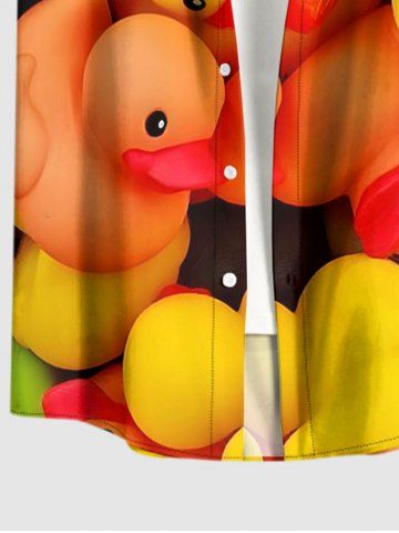 Short Sleeves Shirts > Plus Size Cute Duck Print Hawaii Button Pocket Shirt For Men