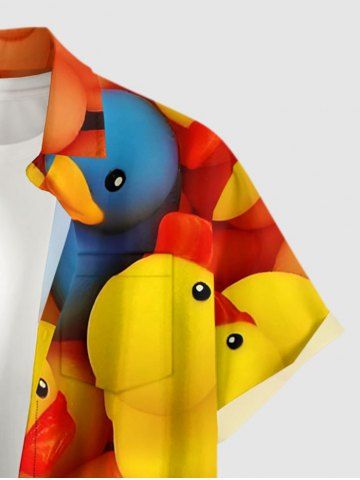 Short Sleeves Shirts > Plus Size Cute Duck Print Hawaii Button Pocket Shirt For Men