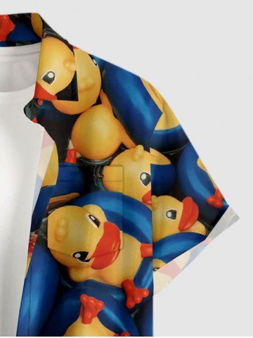 Plus Size Cute Duck Swimming Ring Print Hawaii Button Pocket Shirt For Men - Blue - 5xl