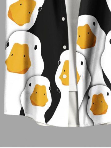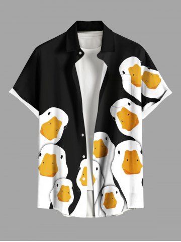 Plus Size Cute Goose Print Hawaii Button Pocket Shirt For Men - Black - Xl
