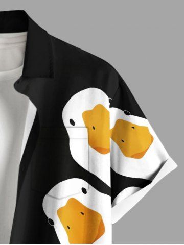 Plus Size Cute Goose Print Hawaii Button Pocket Shirt For Men - Black - 3xl