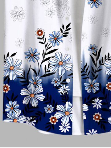 Short Sleeves Shirts > Plus Size Daisy Flower Grass Print Hawaii Button Pocket Shirt For Men