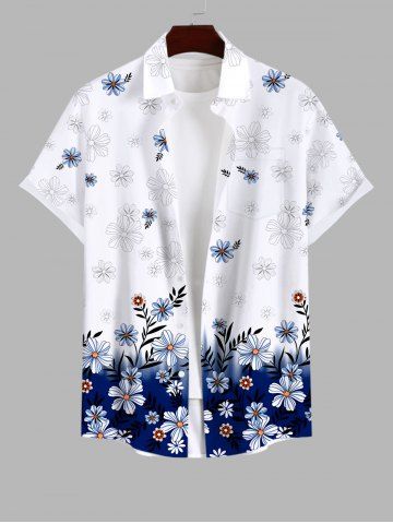 Plus Size Daisy Flower Grass Print Hawaii Button Pocket Shirt For Men - White - Xl