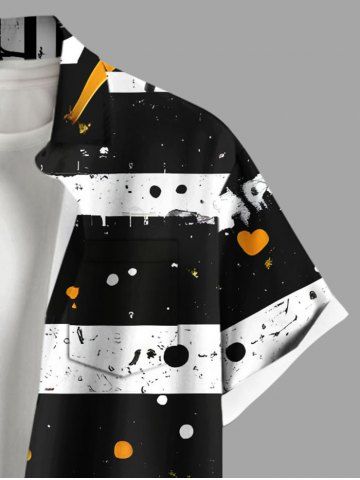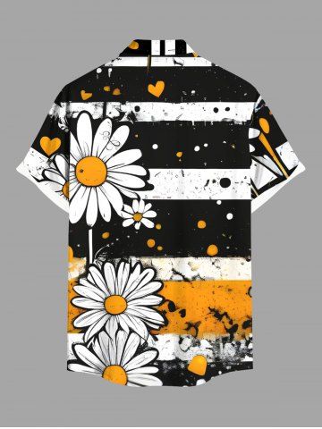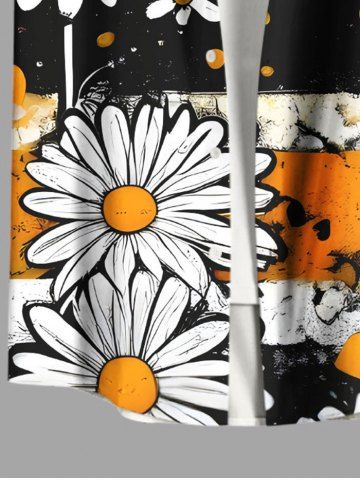 Plus Size Daisy Flower Ink Painting Striped Print Hawaii Button Pocket Shirt For Men - Black - S