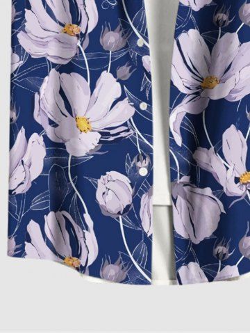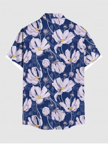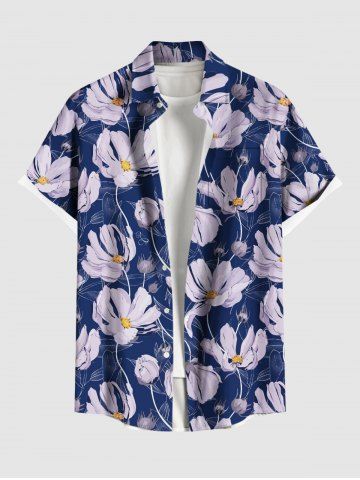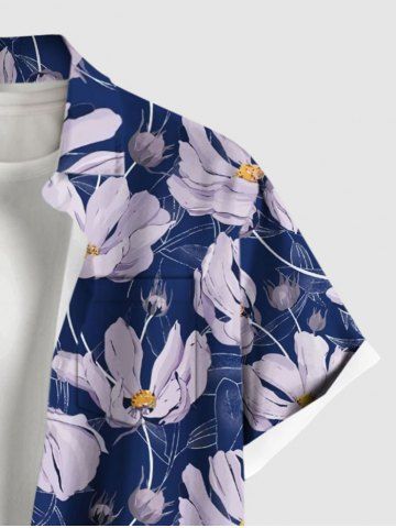 Plus Size Daisy Flower Print Buttons Pocket Hawaii Shirt For Men - Deep Blue - 6xl