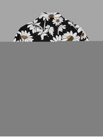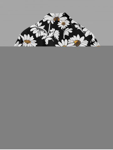Plus Size Daisy Flower Print Buttons Pocket Hawaii Shirt For Men - Black - S
