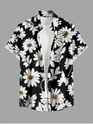 Plus Size Daisy Flower Print Buttons Pocket Hawaii Shirt For Men - Black - 3xl