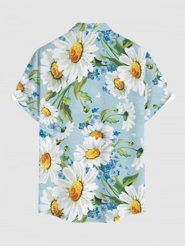 Plus Size Daisy Flowers Leaf Print Buttons Pocket Hawaii Shirt For Men - Powder Blue - 2xl