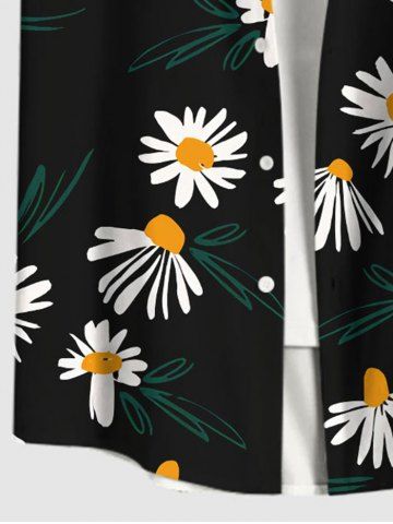 Plus Size Daisy Flowers Leaf Print Hawaii Shirt For Men - Black - S
