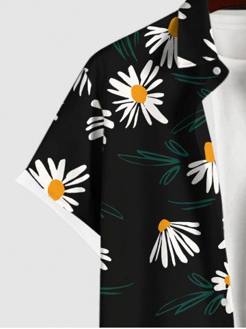 Plus Size Daisy Flowers Leaf Print Hawaii Shirt For Men - Black - 4xl