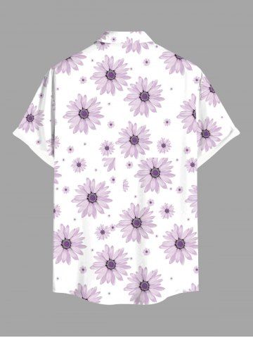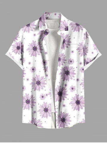 Plus Size Daisy Flowers Print Buttons Pocket Hawaii Shirt For Men - Light Purple - S