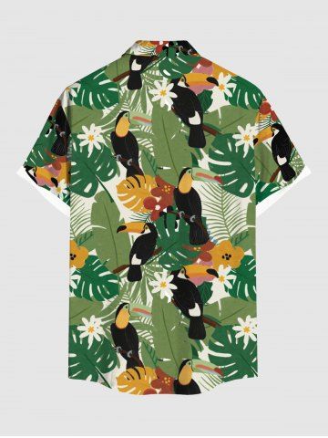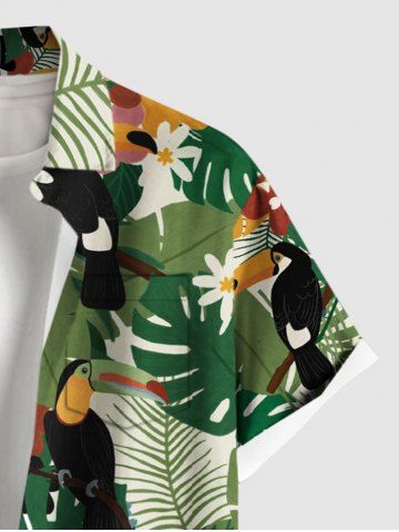 Plus Size Daisy Flowers Tropical Leaf Bird Print Buttons Pocket Hawaii Shirt For Men - Green - M
