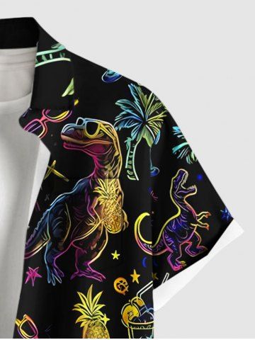 Plus Size Dinosaur Coconut Tree Pineapple Juice Print Buttons Pocket Hawaii Shirt For Men - Black - Xl