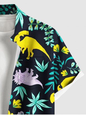 Short Sleeves Shirts > Plus Size Dinosaur Flower Leaf Branch Print Hawaii Button Pocket Shirt For Men